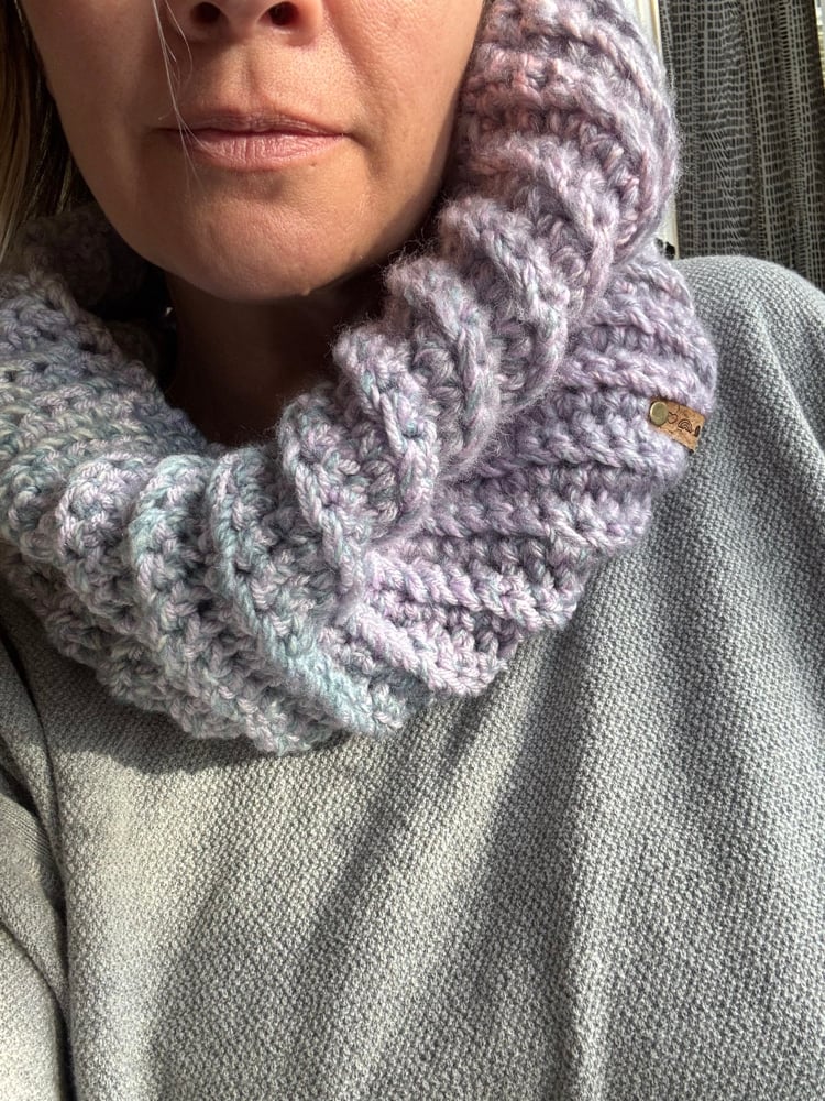 Nicole is named for my sister in law, Nicole (duh). This cowl style scarf is perfect for all/most seasons from mild to super cold.
