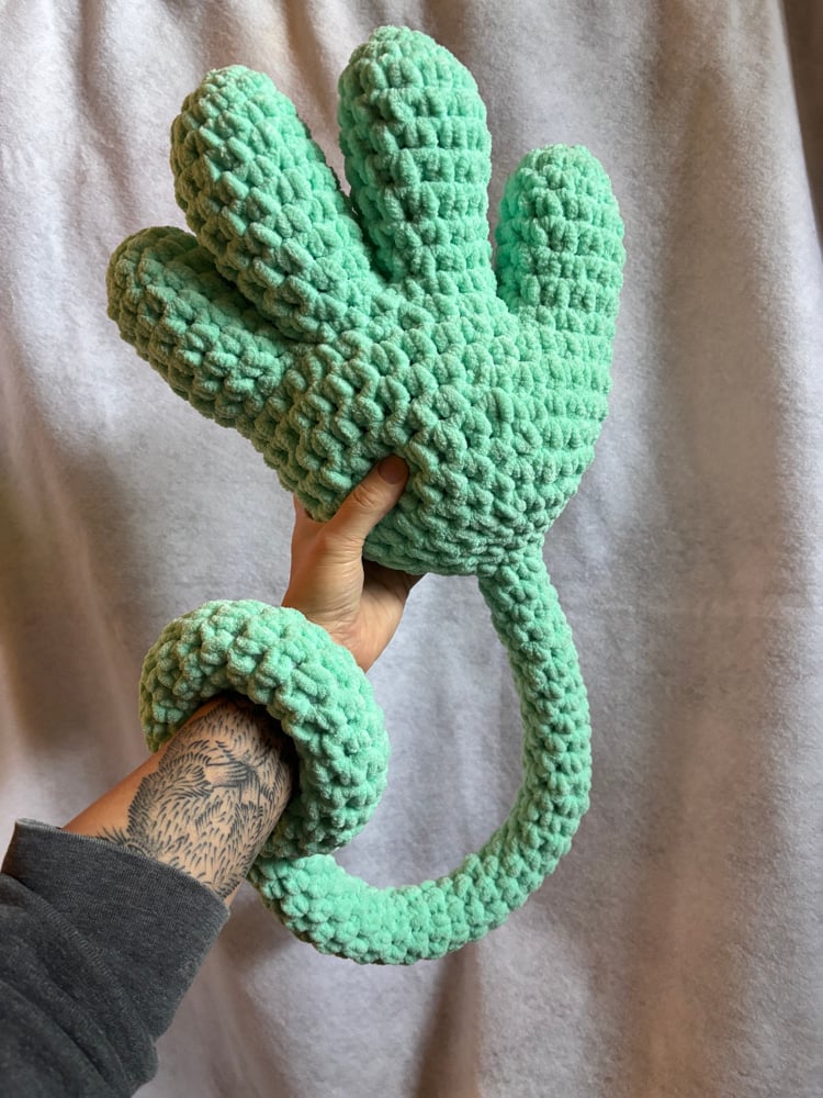 silky hands measure about 3 feet long, made with polyester blanket yarn and stuffed with poly fil. 100% machine washable and dryable - recommend washing in a laundry bag to prevent any parts from getting tangled in machine.